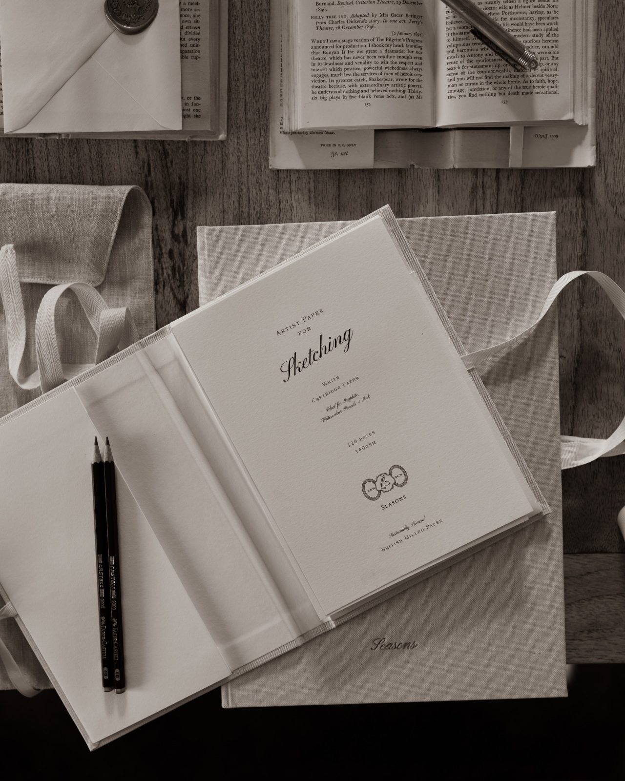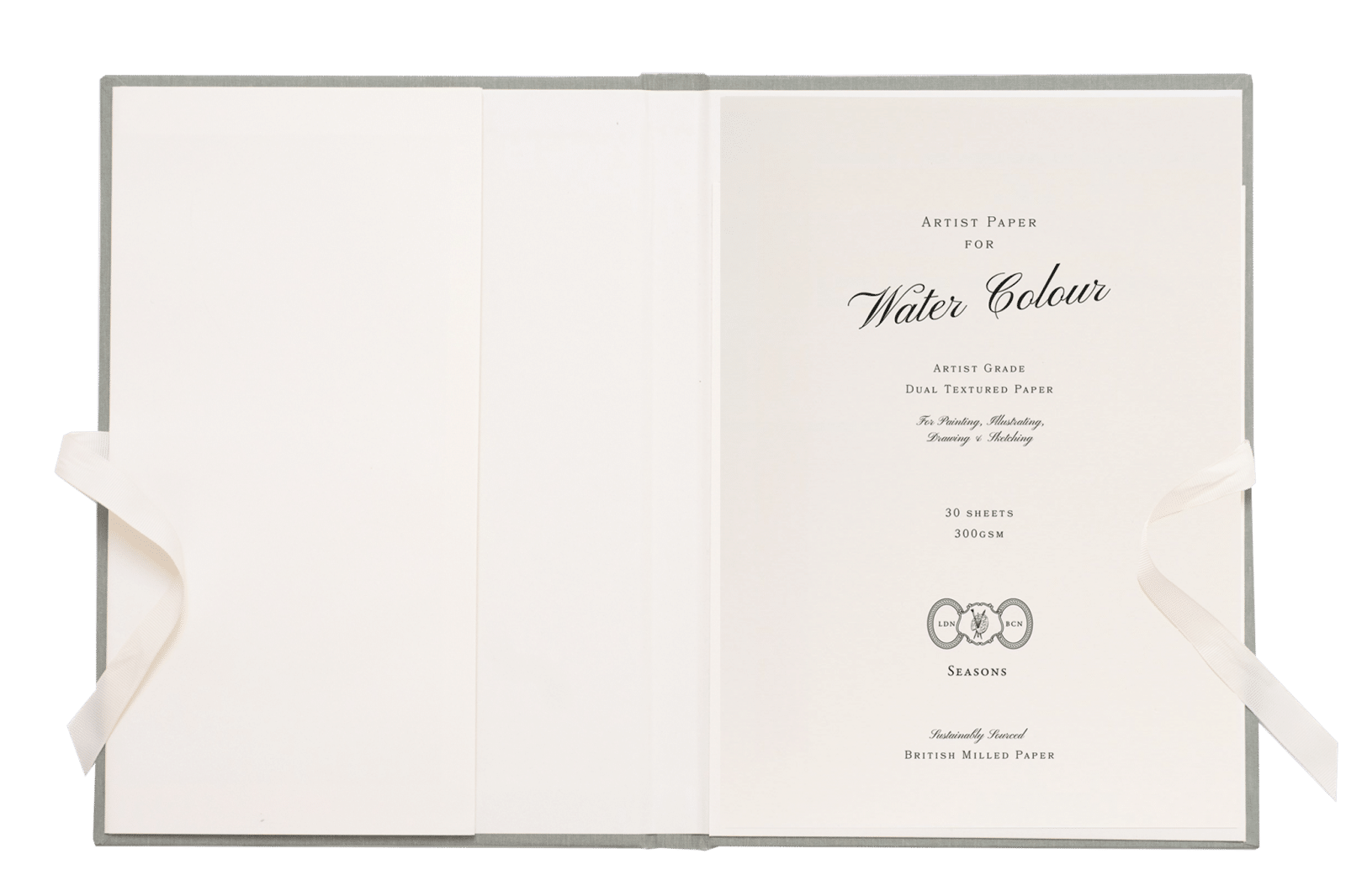 Light and tactile, our ribbon-sealed artist portfolios are designed to protect your work and are finished with a luxurious soft woven cover and embossed Seasons logo. Also featuring an internal pocket that provides additional storage within. Each portfolio comes with your choice of detachable artist pad–writing, sketching or watercolour–which can be readily swapped out for your next pad, once complete. Choose from our selection of five nature-inspired colourways.