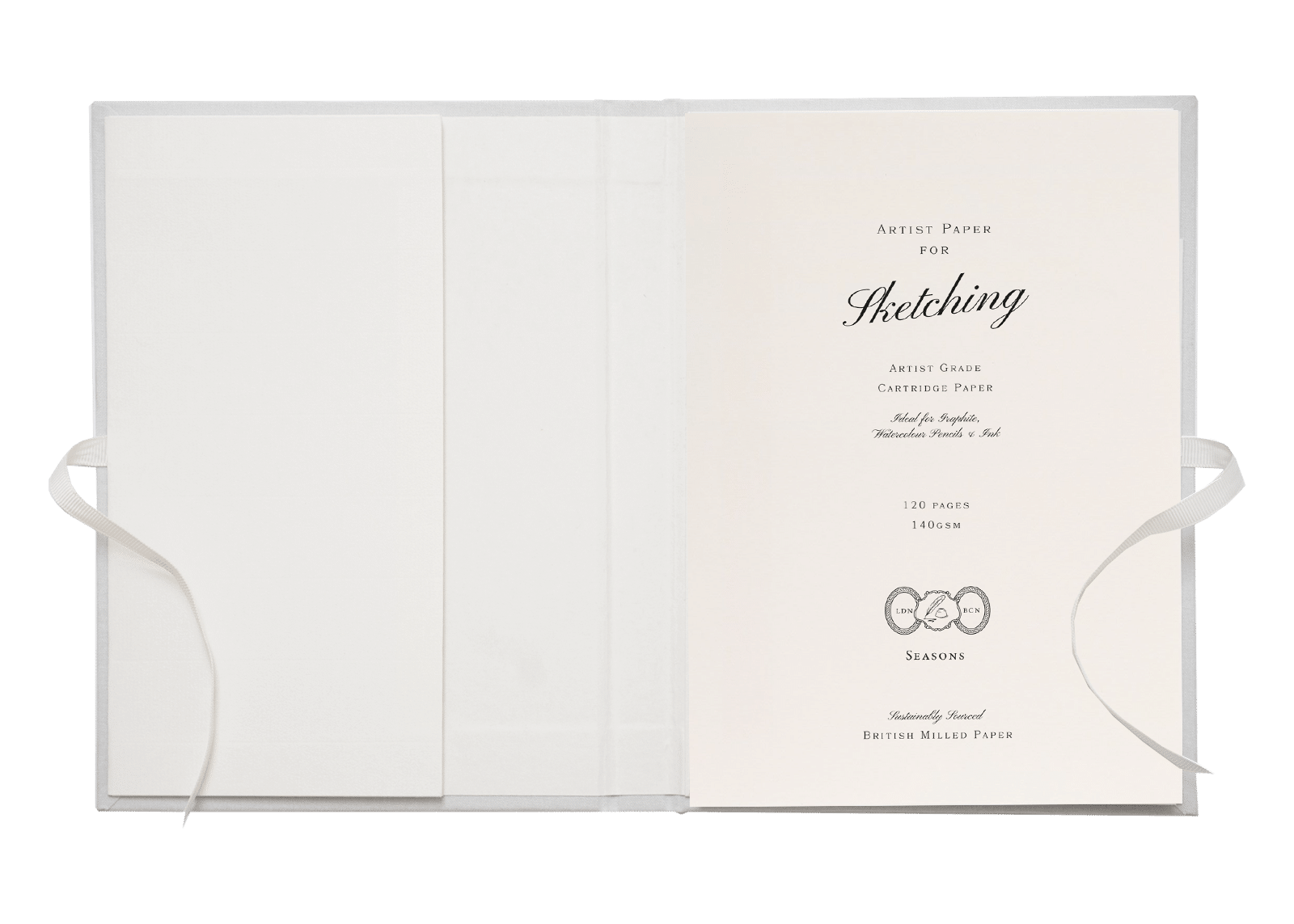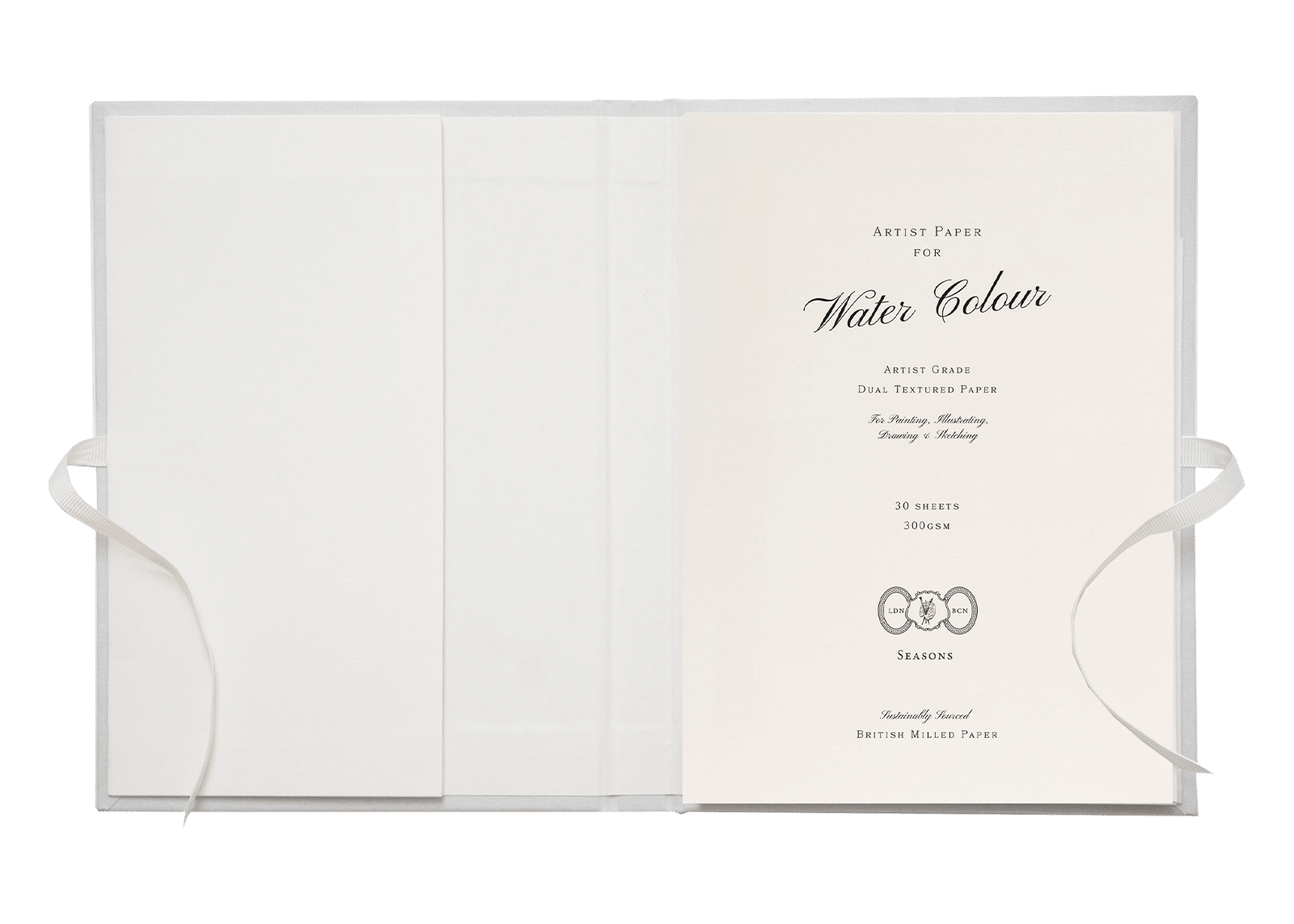 Light and tactile, our ribbon-sealed artist portfolios are designed to protect your work and are finished with a luxurious soft woven cover and embossed Seasons logo. Also featuring an internal pocket that provides additional storage within. Each portfolio comes with your choice of detachable artist pad–writing, sketching or watercolour–which can be readily swapped out for your next pad, once complete. Choose from our selection of five spring-inspired colourways.