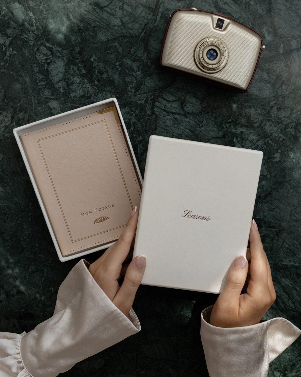 Travel in style with our charming leather passport holder featuring a ‘Bon Voyage’ design emblazoned on the front cover and blind embossed Seasons logo on the rear. Designed to protect your passport and provide an aesthetic flourish, this cover is made from real leather with a smooth firm outer and complete with golden metal corners for a luxurious experience. Each passport cover is supplied in a custom Seasons branded presentation box.
