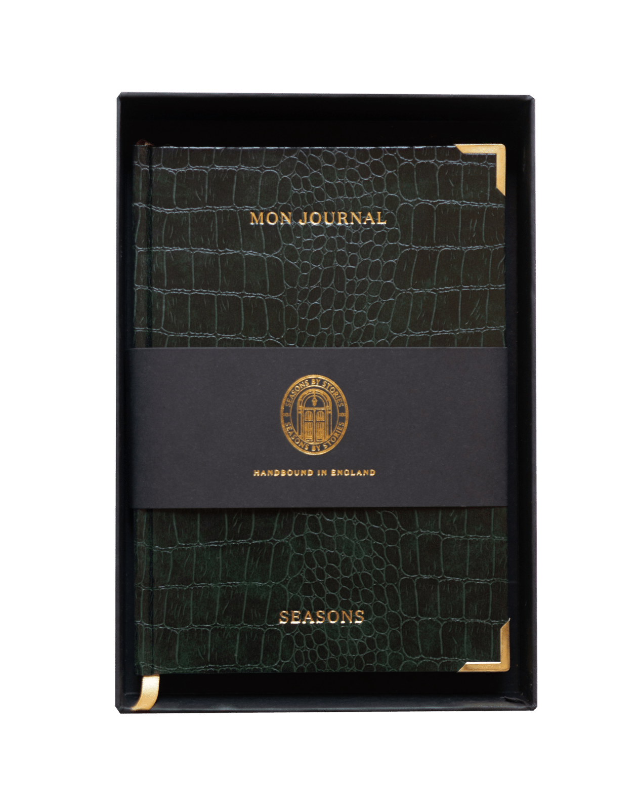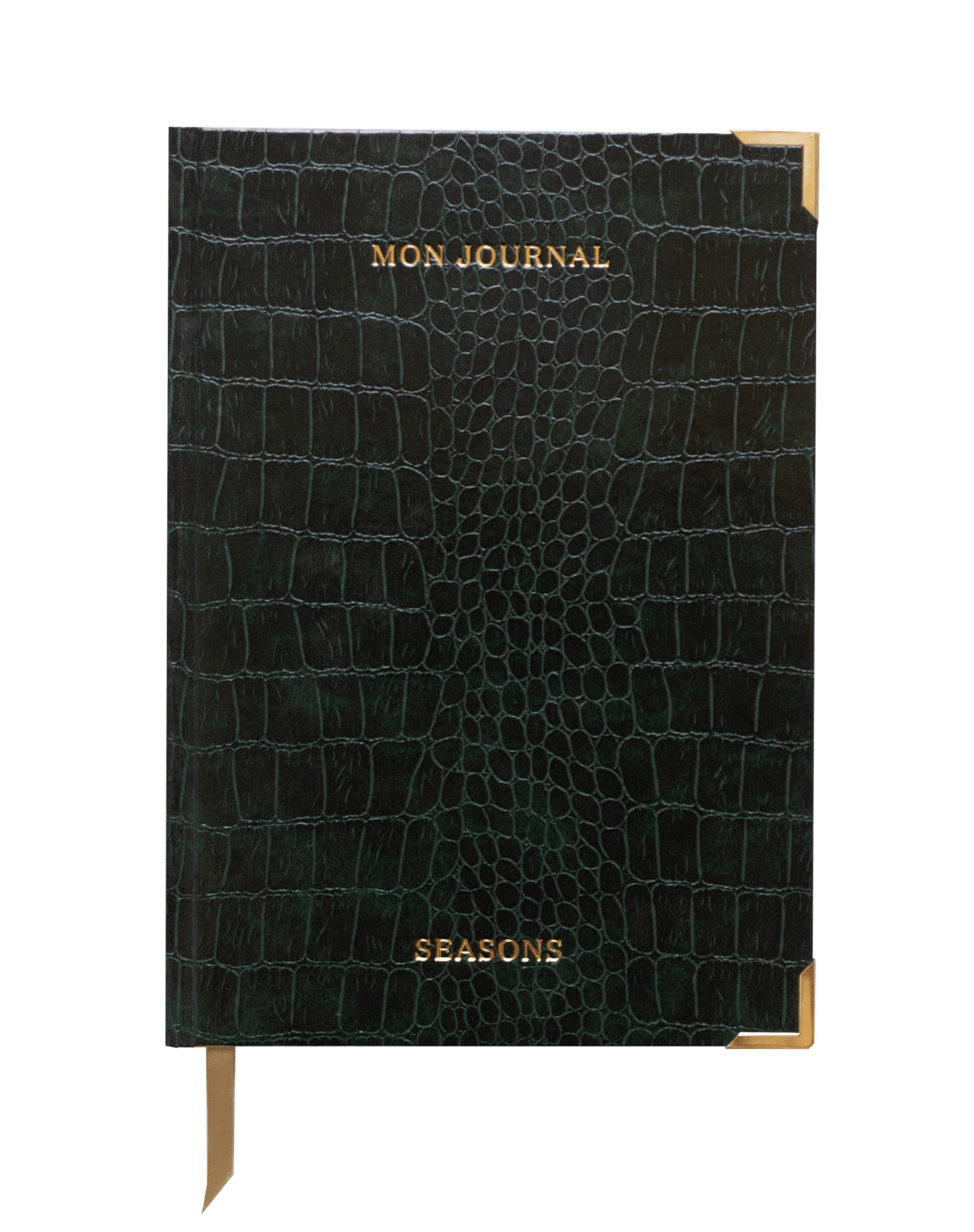 This nimble notebook features a premium croc covering and gold embossed lettering, the slightly cushioned cover is framed by gold corners to create a durable and luxurious experience.