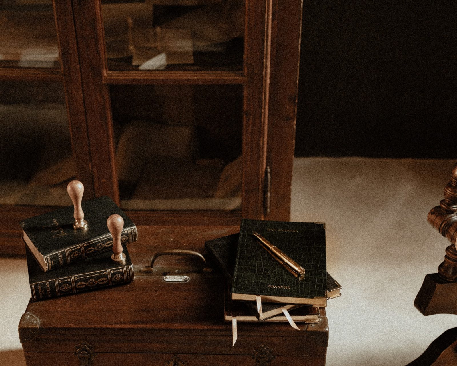 - Ornate gold metal corners