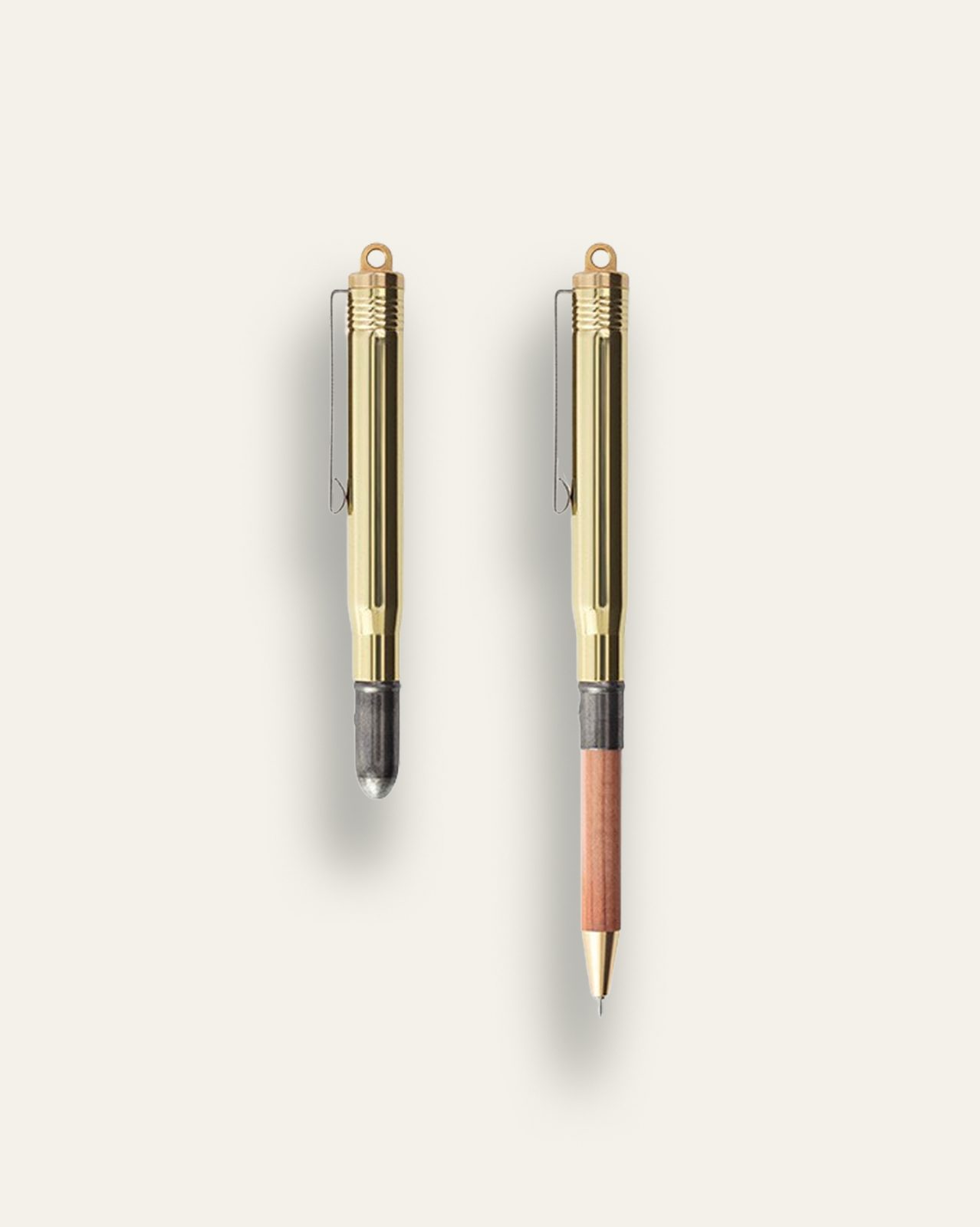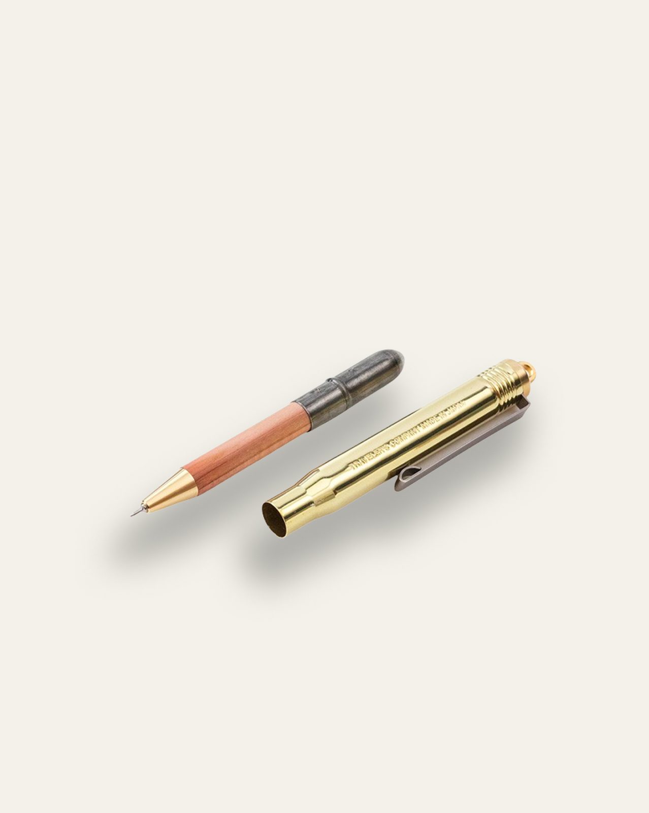 Crafted by skilled Japanese craftsmen, the beautiful bullet casing boasts a depth in texture that solid brass acquires over time and with use, developing a unique and pleasing patina.