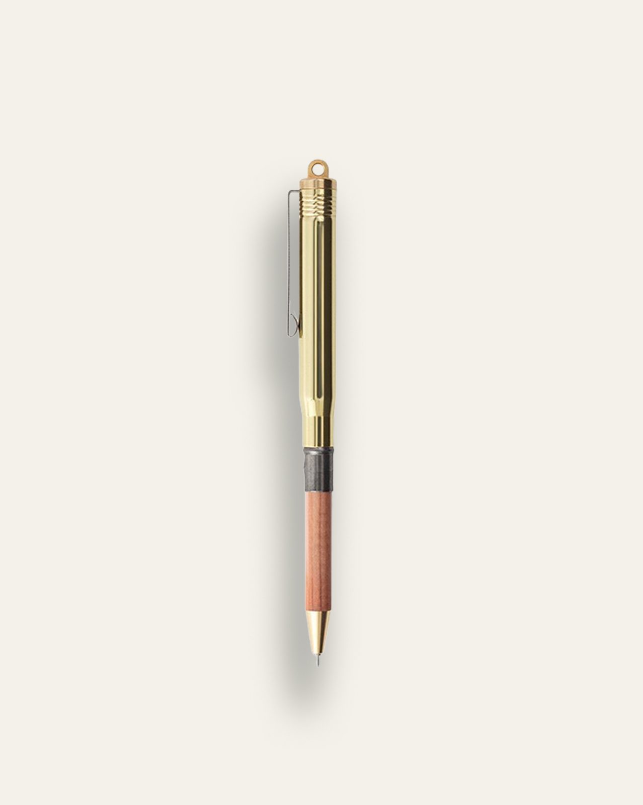 The pen features a versatile ballpoint tip, which will glide luxuriously over the pages of British-milled notebooks, as well as a wooden grip that is both visually charming and robust. It also features a sturdy iron clip for attaching to the cover of a notebook and a ring on top of the pen that affords the option of securing the pen to your keys or someplace safe.