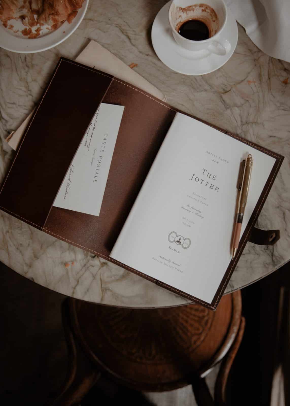 Our very first leather journal is a most luxurious accessory for those who wish to keep up appearances on the move. The firm leather outer is a reliable friend you can quite literally lean on when you’re on the go for a steady page holder. Featuring a popper closure strap and ‘Seasons’ blind embossed logo on the back cover, this journal is subtle as it is sleek. The refillable nature of the journal means that it is designed to last a lifetime, simply swapping out the used pad (somewhere safe, of course) for a new one whenever you need. This journal comes readily prepared with your choice of either our lined ‘Writer’ or unlined ‘Jotter’ refill pads to get you started, as well as its very own protective linen bag with leather drawstring.
