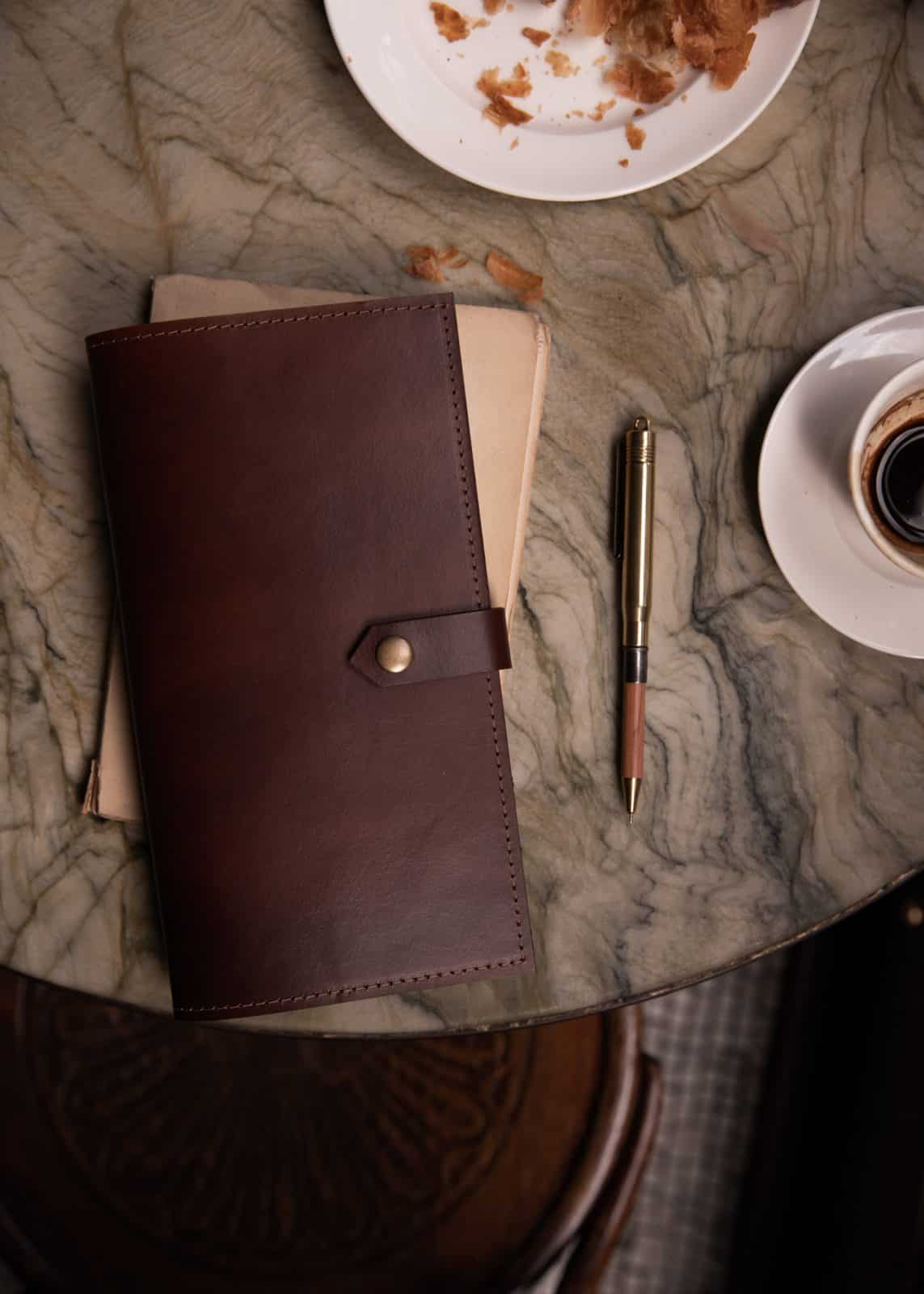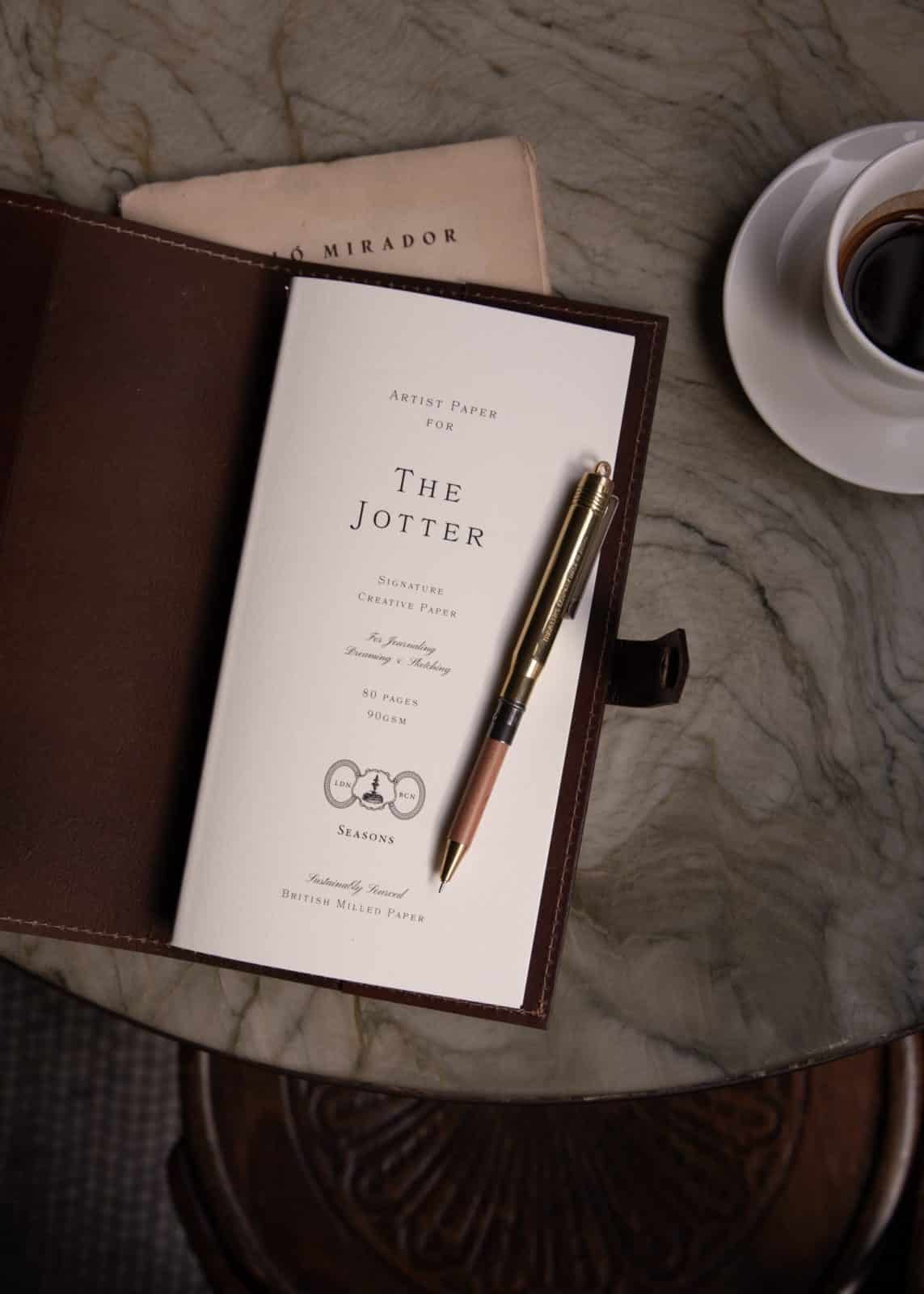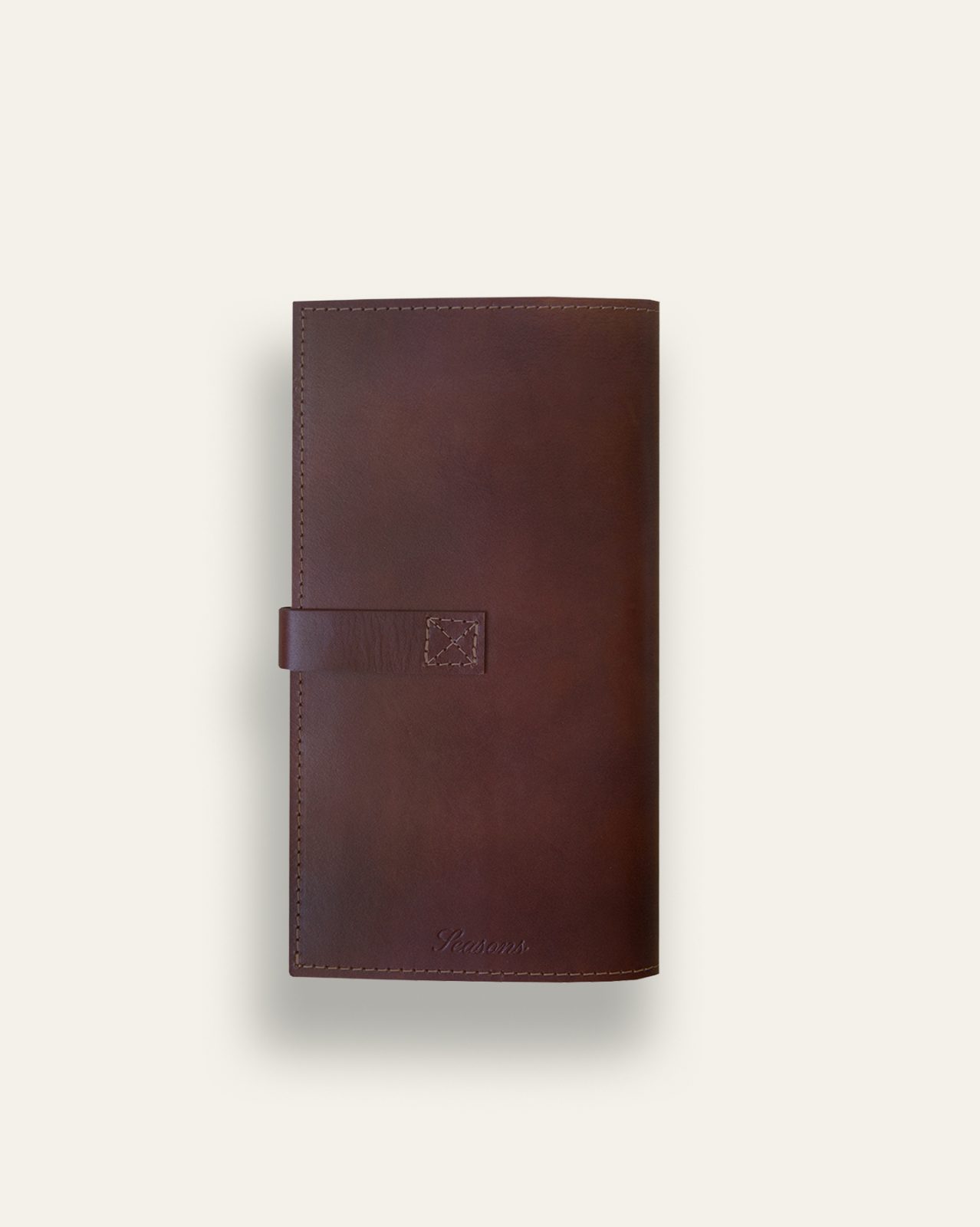 The leather Panama journal is an ideal companion for the well-heeled traveller thanks to its slimline shape and firm leather outer complete with a popper closure strap. A subtle ‘Seasons’ blind embossed can be found on the back cover. The refillable nature of the journal means that it is designed to last a lifetime, simply swapping out the used pad (somewhere safe, of course) for a new one whenever you need. This journal comes readily prepared with your choice of either our lined ‘Writer’ or unlined ‘Jotter’ refill pads to get you started, as well as its very own protective linen bag with leather drawstring.