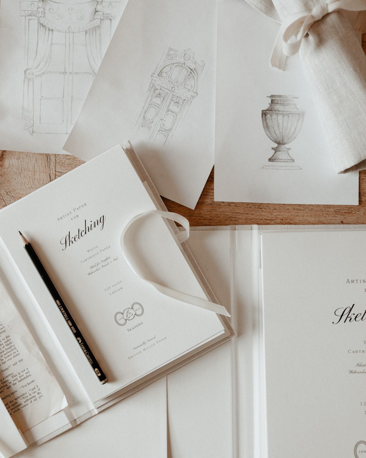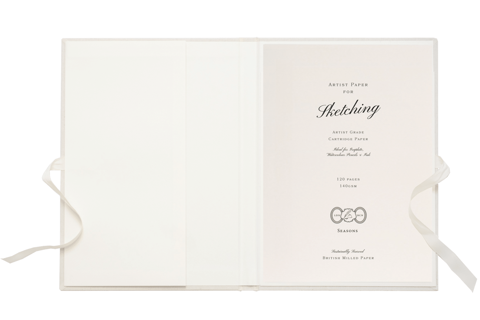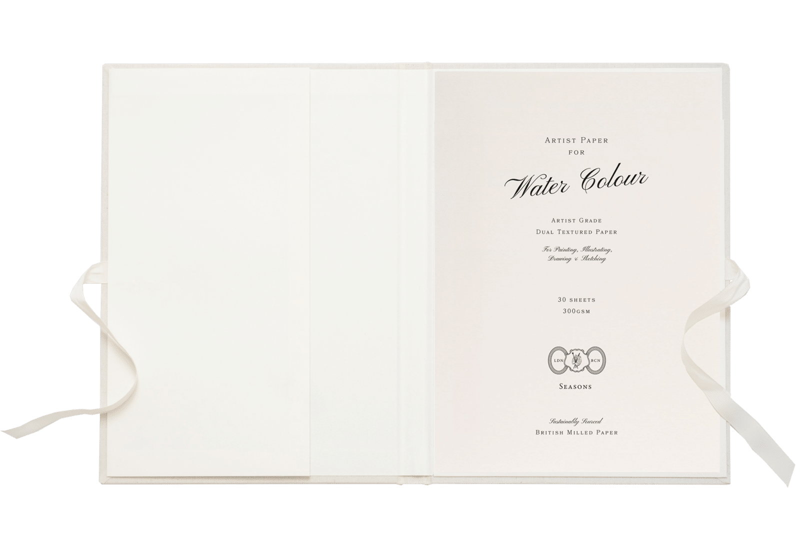 Light and tactile, our ribbon-sealed artist portfolios are designed to protect your work and are finished with a luxurious soft woven cover and embossed Seasons logo. Also featuring an internal pocket that provides additional storage within. Each portfolio comes with your choice of detachable artist pad–writing, sketching or watercolour–which can be readily swapped out for your next pad, once complete. Choose from our selection of five spring-inspired colourways.