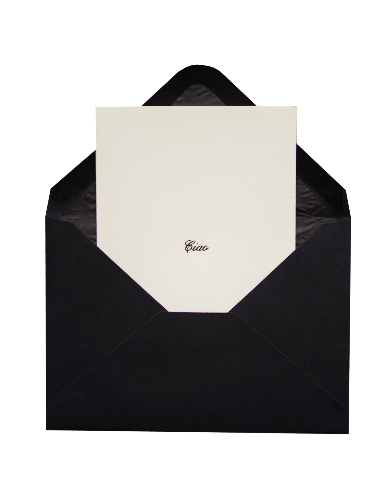 Simple, sleek and wonderfully tactile–elevate your correspondence with our black-foil engraved typography cards. Each boxed set contains ten natural white wove folded A6 cards, crafted in England using the finest GF smith paper complete with luxurious, fully tissue-lined black envelopes. The inside has, of course, been left blank for your own personalised message.