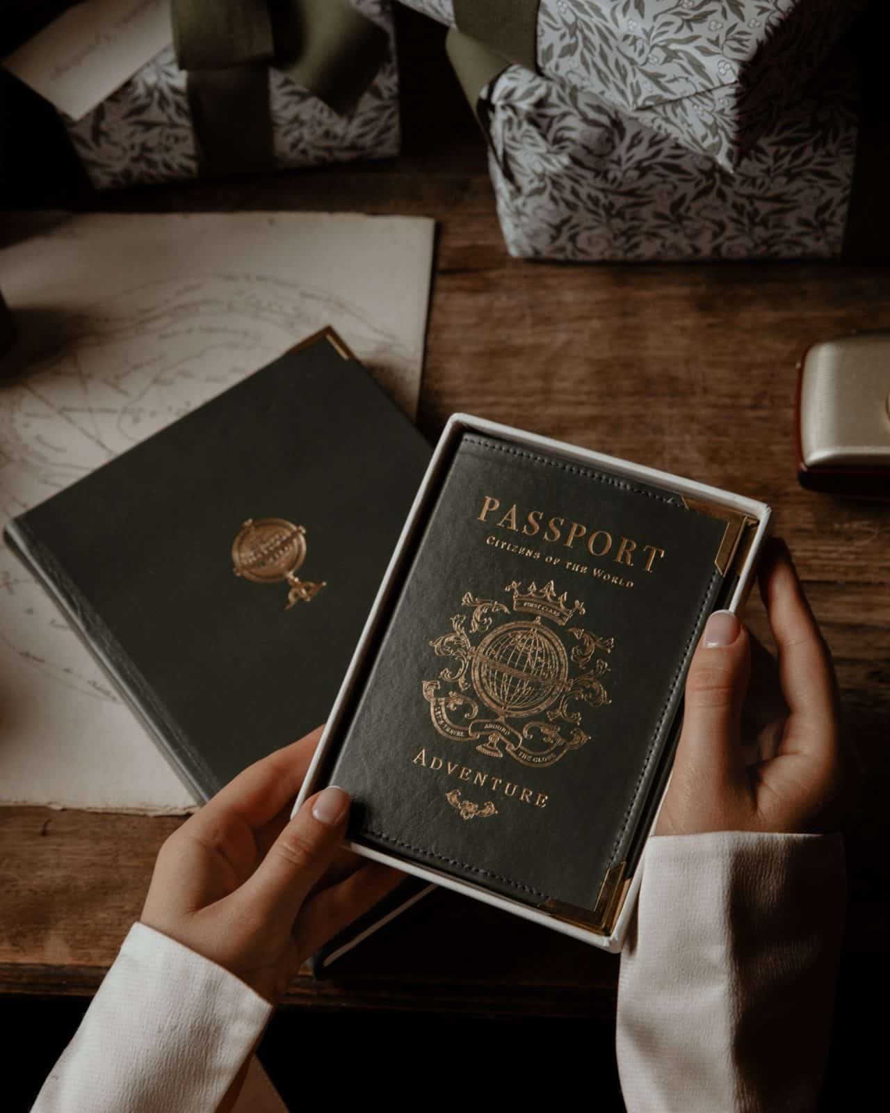 Calling citizens of the world! Travel in style with our iconic leather passport holder featuring a bespoke illustrated emblem on the front cover and blind embossed Seasons logo on the rear. Designed to protect your passport and provide an aesthetic flourish, this cover is made from real leather with a smooth firm outer and complete with golden metal corners for a luxurious experience. Each passport cover is supplied in a custom Seasons branded presentation box.