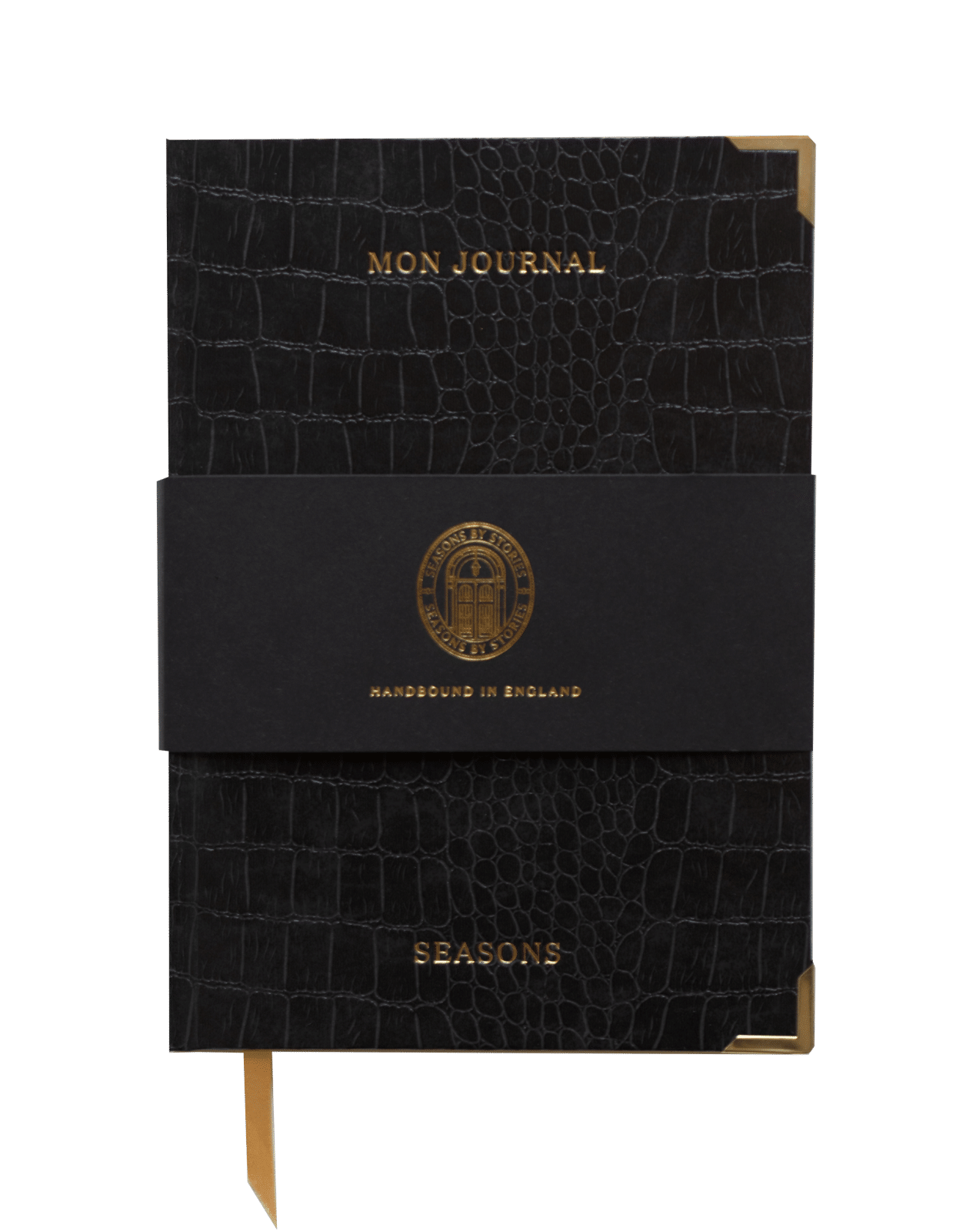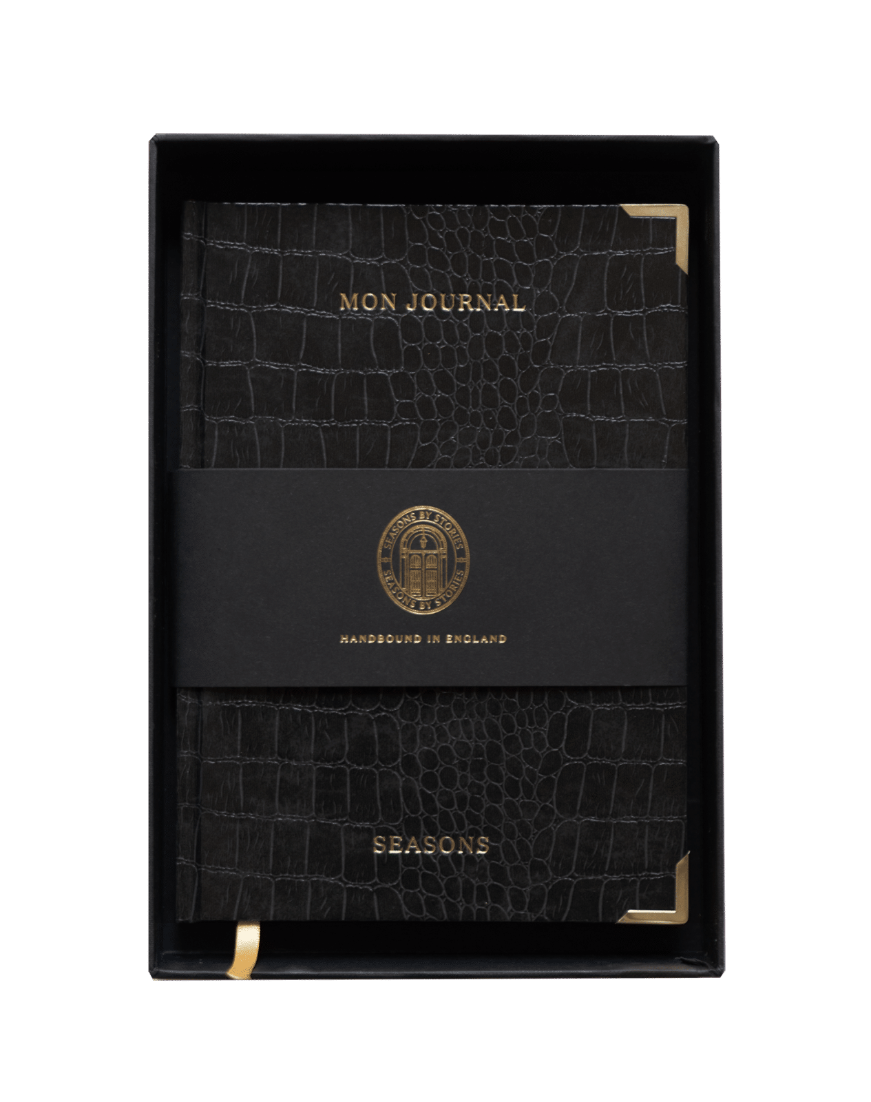 Inside, the 192 lined pages are made from our sumptuous, British milled, fountain-pen-friendly paper and have been finished with gilded edges for added drama. The notebook is hand-bound and features lay-flat binding for optimum writing comfort, complete with a grosgrain ribbon marker.