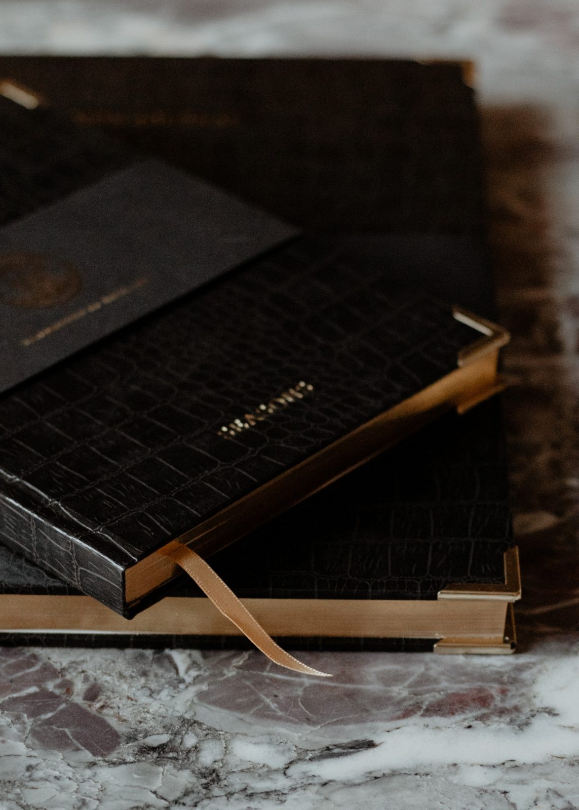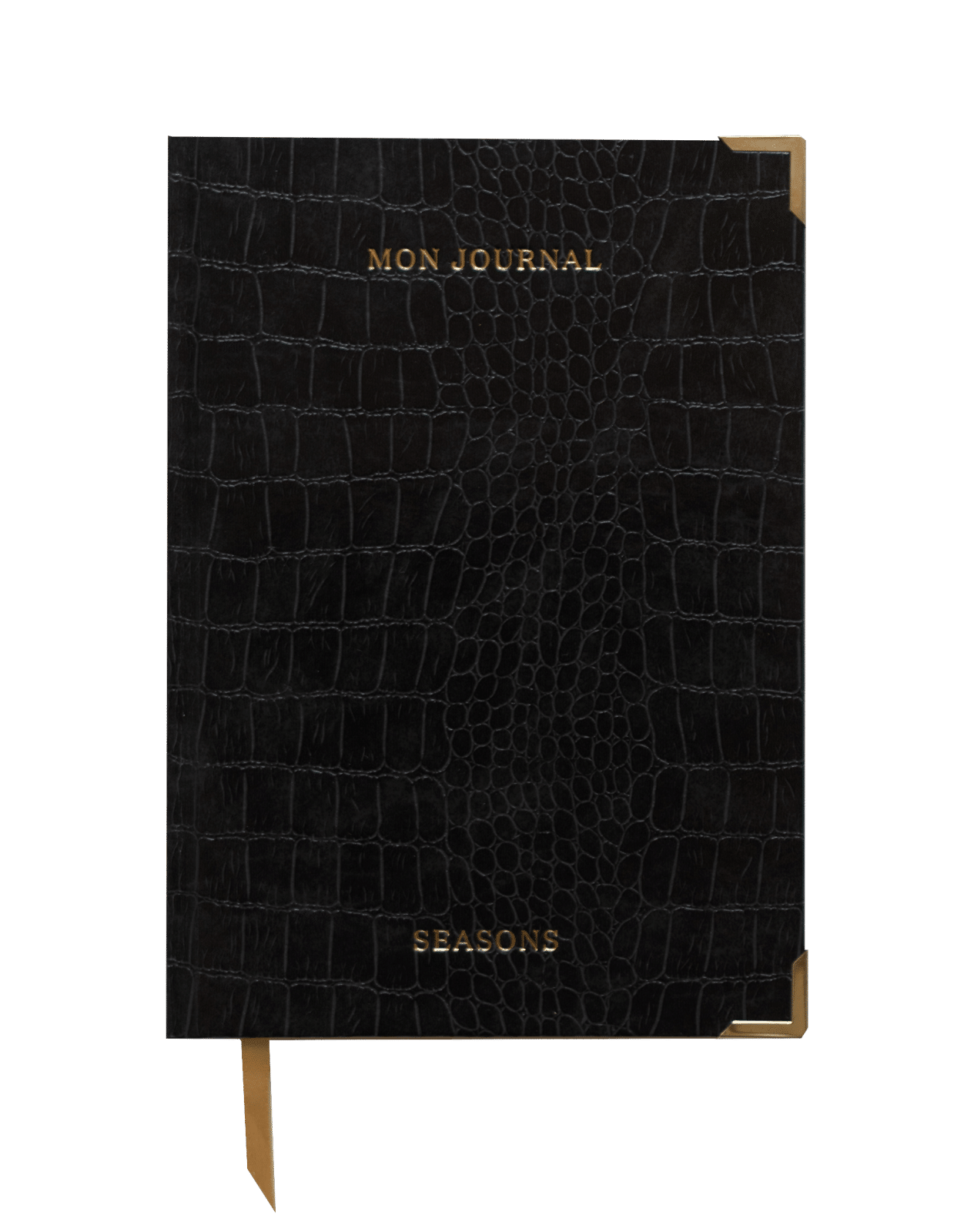 This nimble notebook features a premium croc covering and gold embossed lettering, the slightly cushioned cover is framed by gold corners to create a durable and luxurious experience.