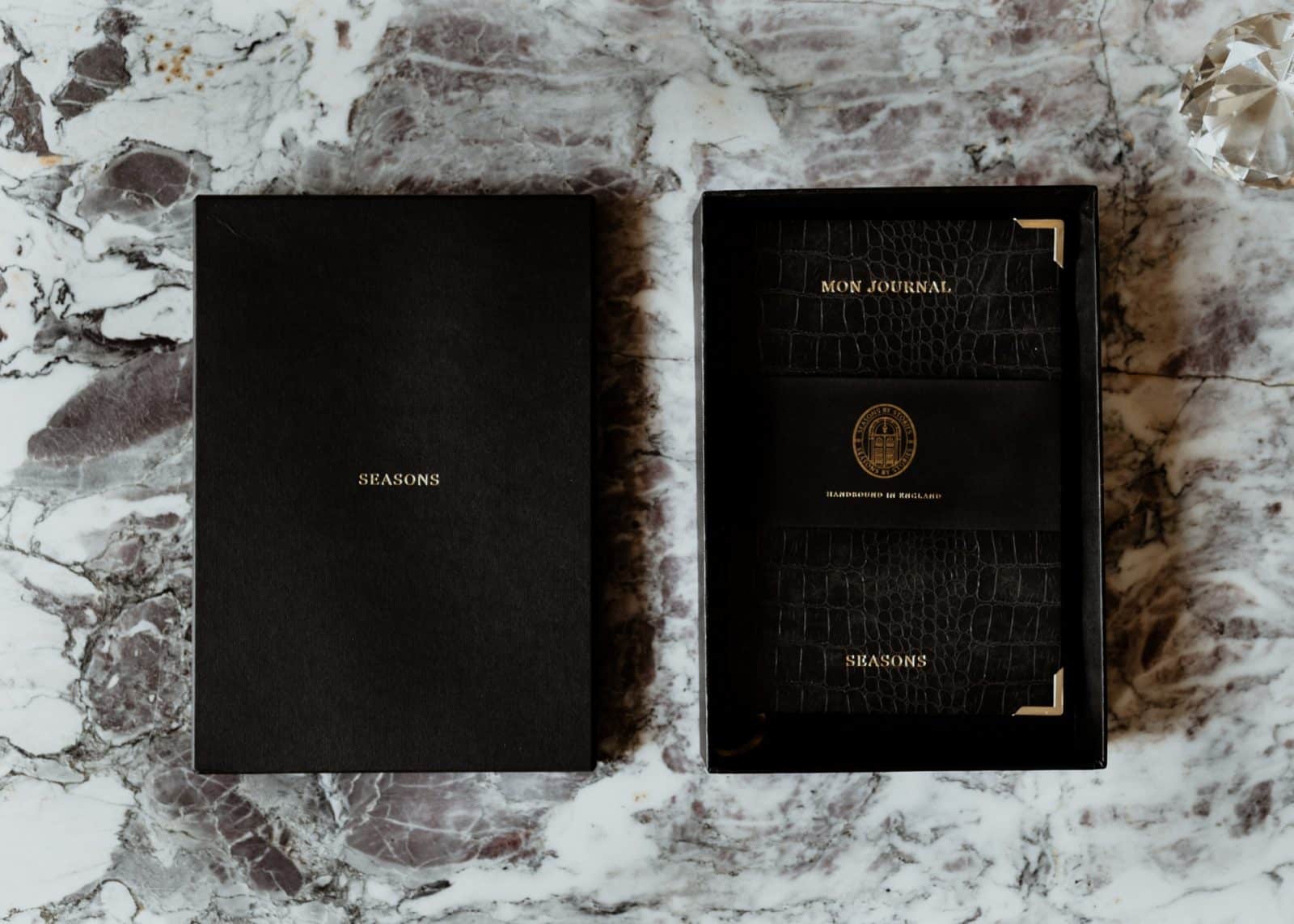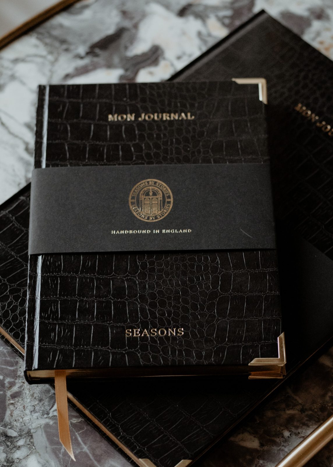 Each notebook comes wrapped in an elegant black recyclable card slipcase and tray with gold embossing.