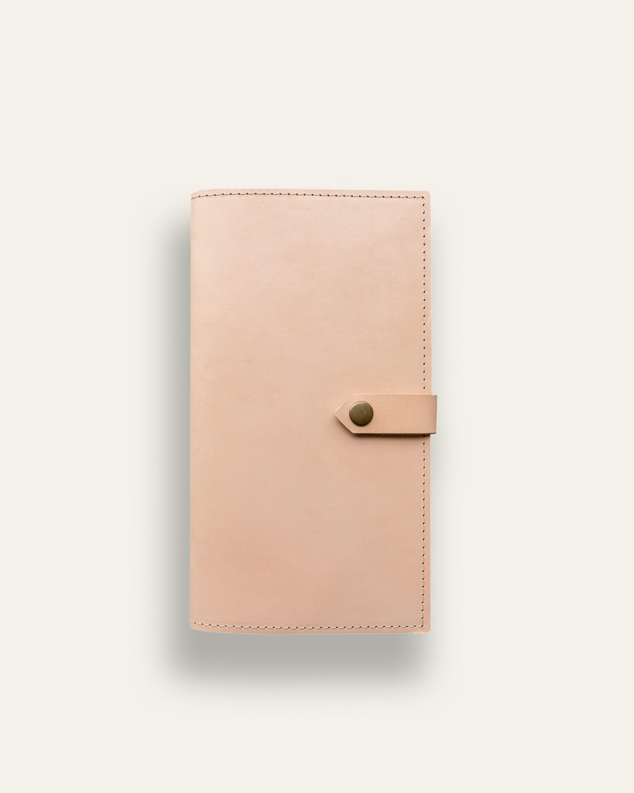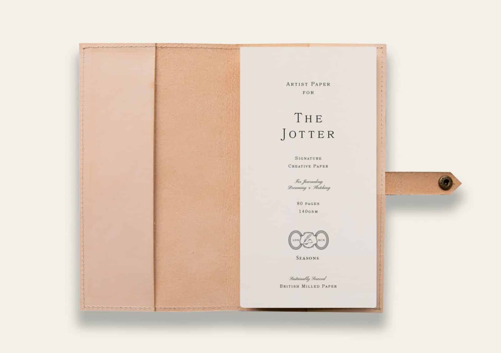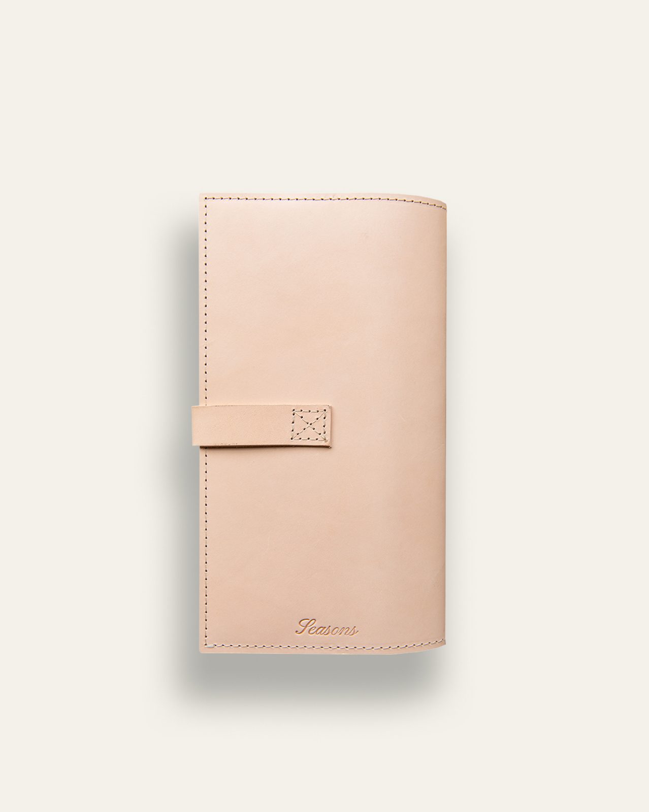 The leather Panama journal is an ideal companion for the well-heeled traveller thanks to its slimline shape and firm leather outer complete with a popper closure strap. A subtle ‘Seasons’ blind embossed can be found on the back cover. The refillable nature of the journal means that it is designed to last a lifetime, simply swapping out the used pad (somewhere safe, of course) for a new one whenever you need. This journal comes readily prepared with your choice of either our lined ‘Writer’ or unlined ‘Jotter’ refill pads to get you started, as well as its very own protective linen bag with leather drawstring.