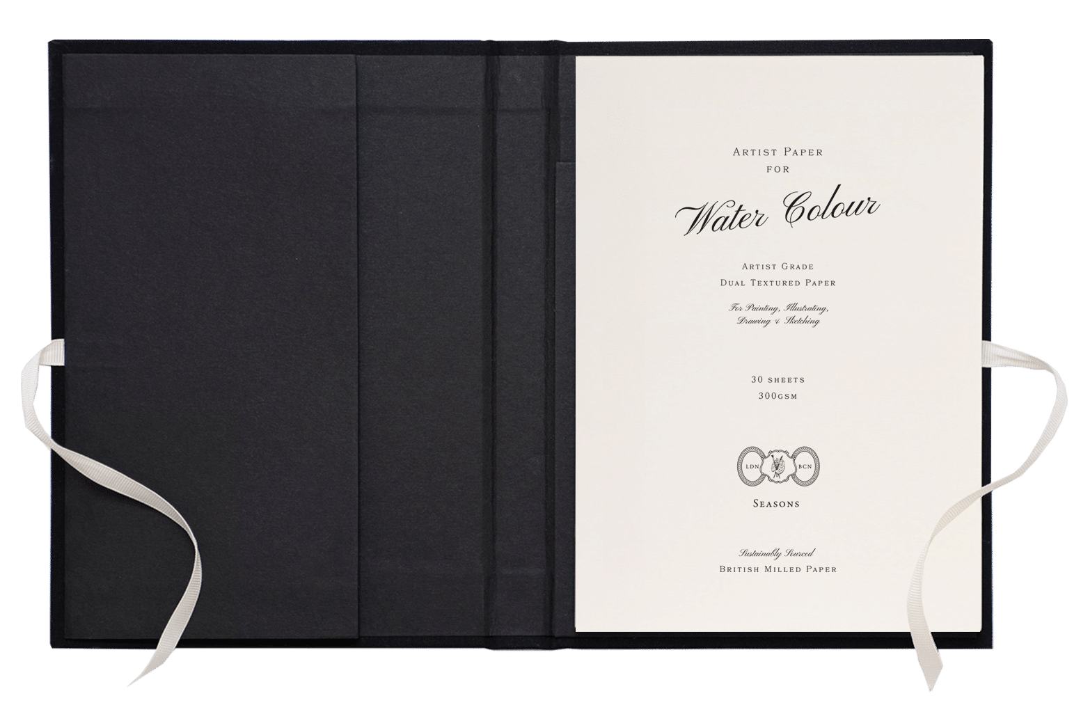 Light and tactile, our ribbon-sealed artist portfolios are designed to protect your work and are finished with a luxurious soft woven cover and embossed Seasons logo. Also featuring an internal pocket that provides additional storage within. Each portfolio comes with your choice of detachable artist pad–writing, sketching or watercolour–which can be readily swapped out for your next pad, once complete. Choose from our selection of five spring-inspired colourways.