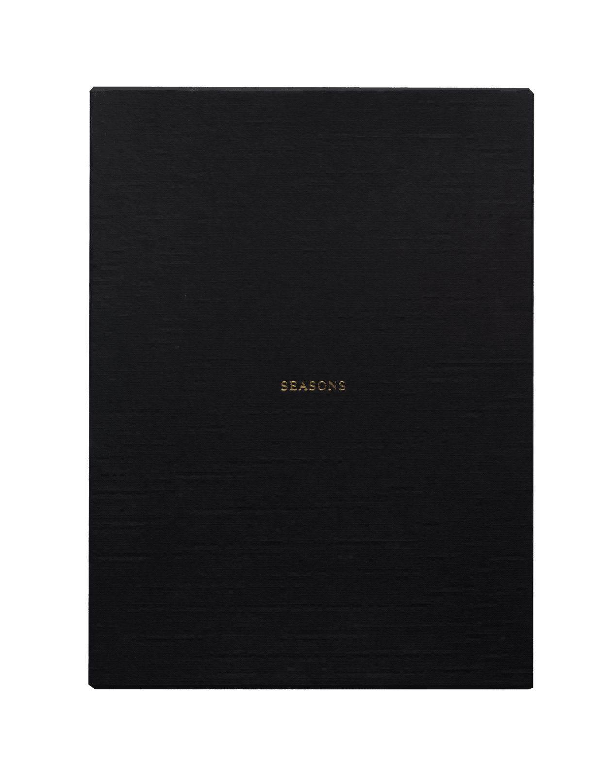 Each notebook comes wrapped in an elegant black recyclable card slipcase and tray with gold embossing.