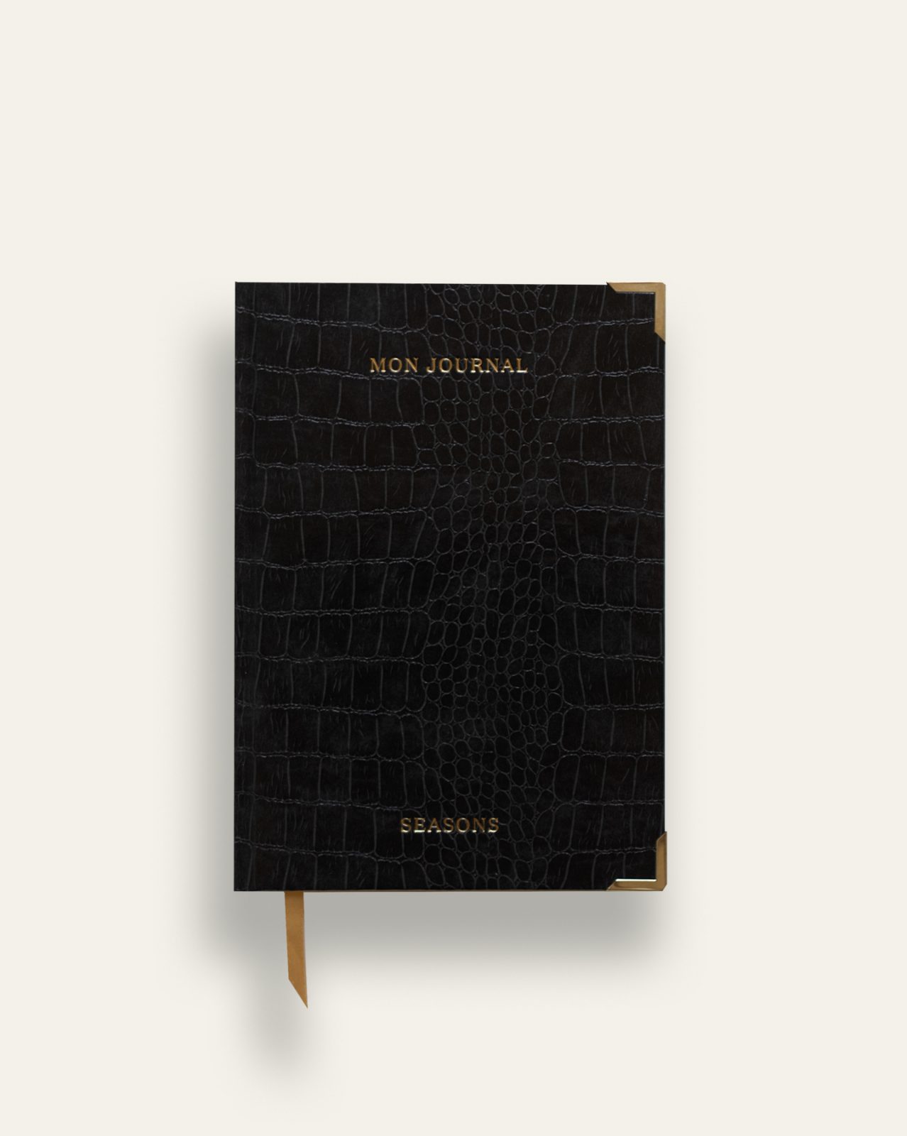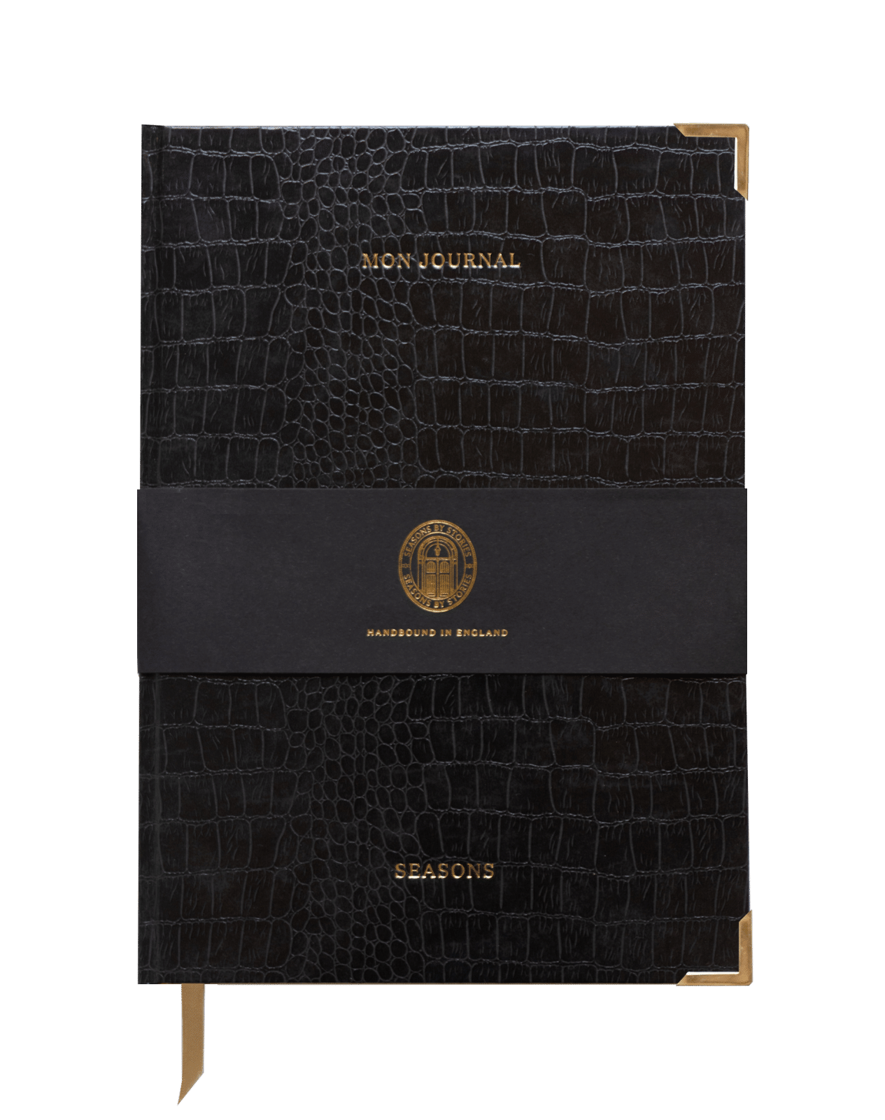 This desk-sized A4 notebook features a premium croc covering and gold embossed lettering, a slightly cushioned cover is framed by gold corners to create a durable and luxurious experience.