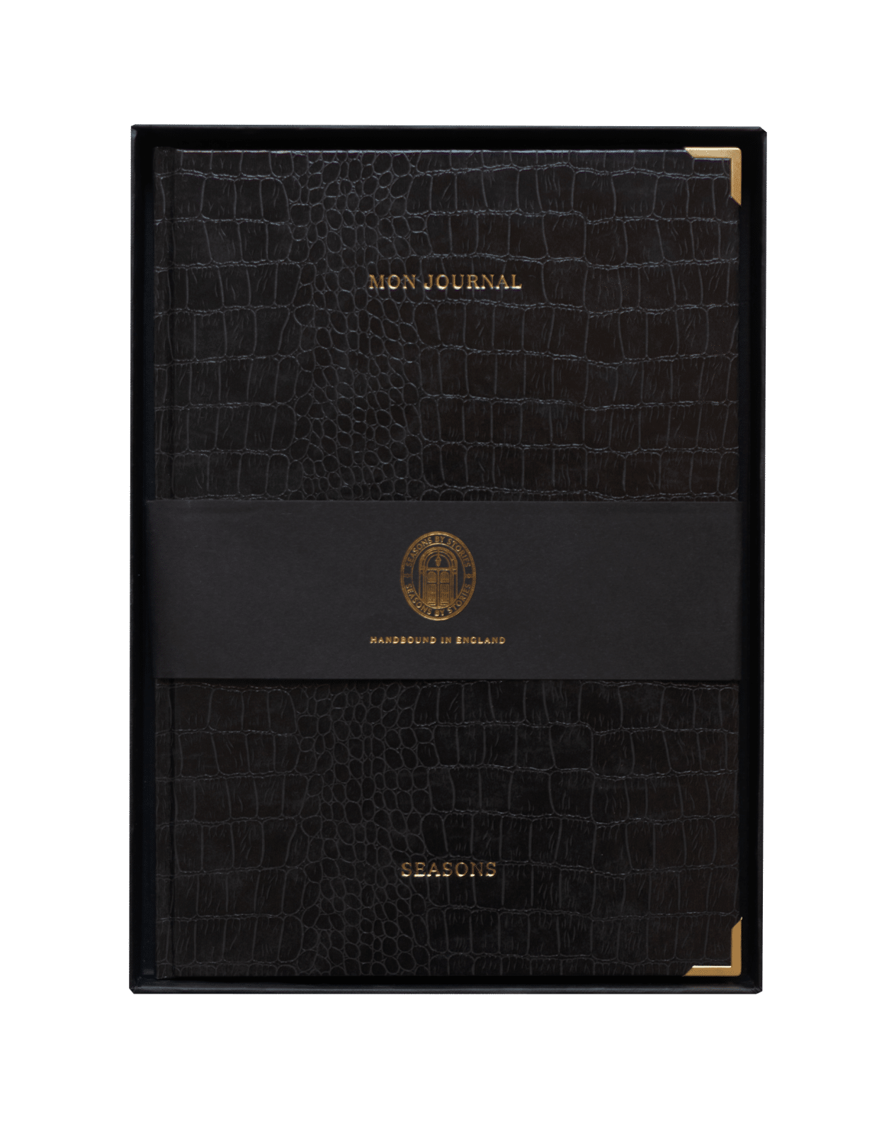 Inside, the 200 lined pages are made from our sumptuous, British milled, fountain-pen-friendly paper and have been finished with gilded edges for added drama. The notebook is hand-bound and features lay-flat binding for optimum writing comfort, complete with a grosgrain ribbon marker.